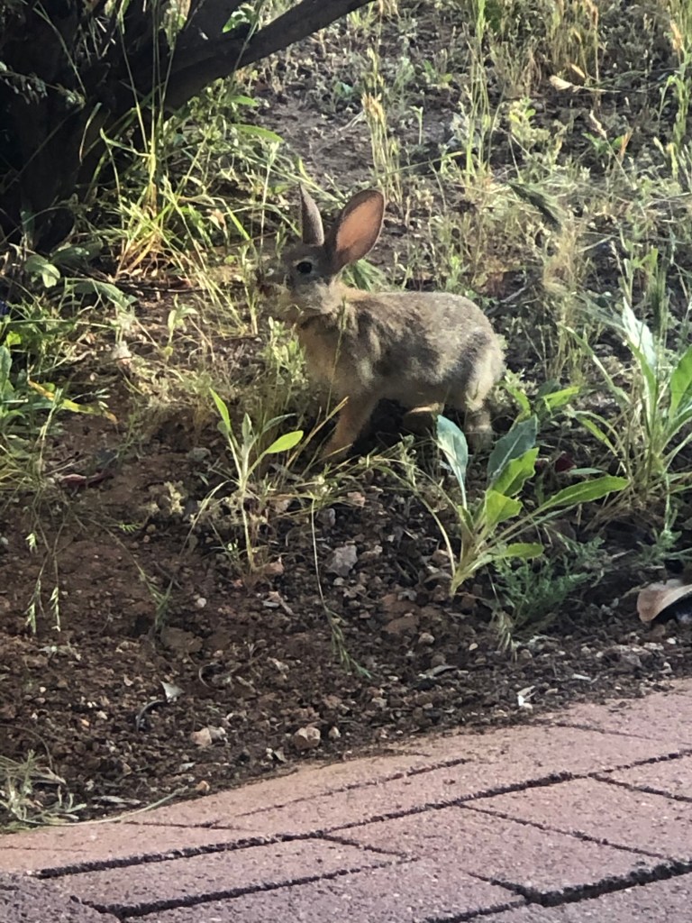 Oh sweet call of the Spring time. White cotton tails. still young, come to the door to remind us of the turning of the days. The sun behind it passes through it’s ears, here I am.