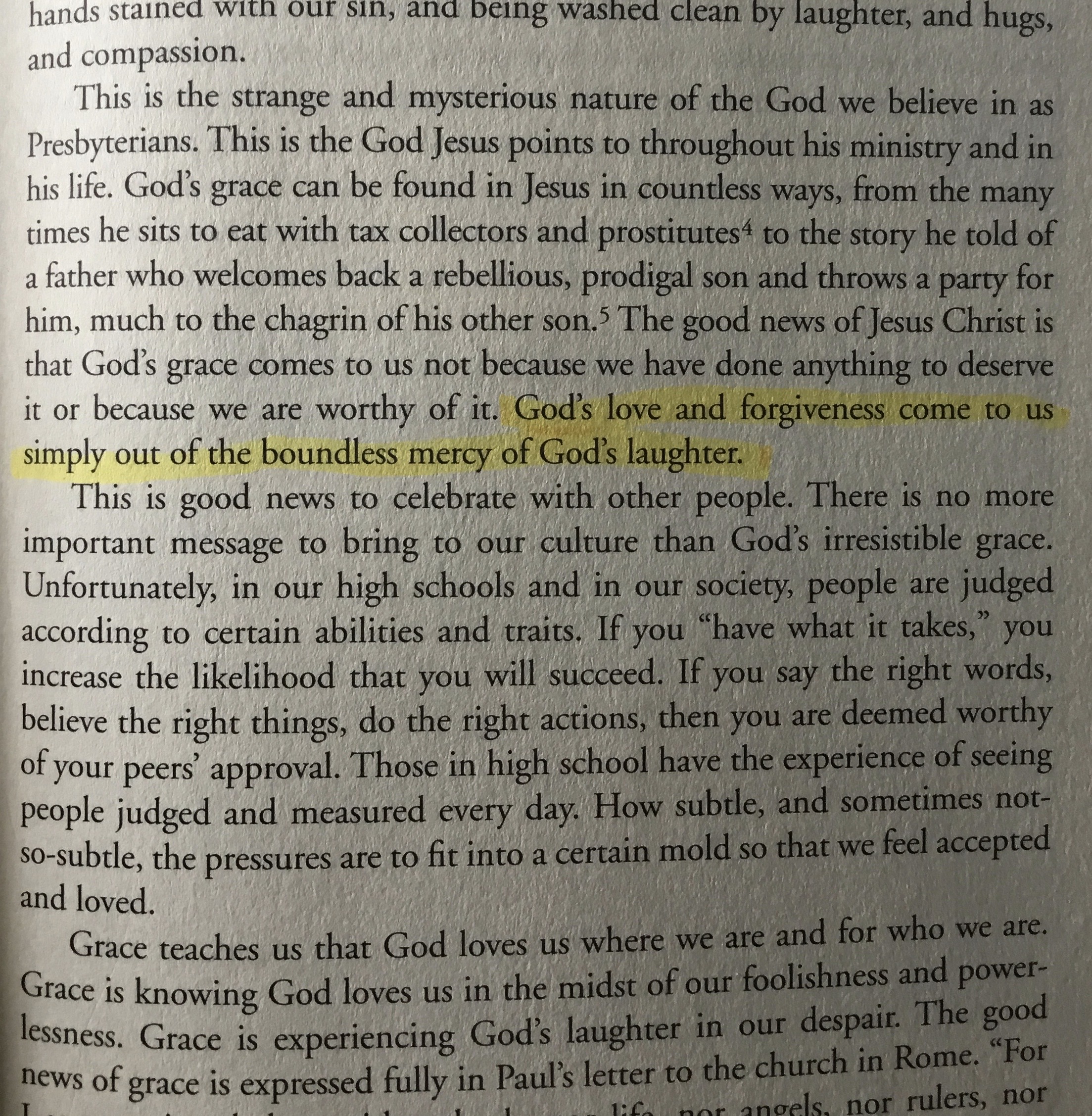 “God’s love and forgiveness come to us simply out of the boundless mercy of God’s laughter.”
